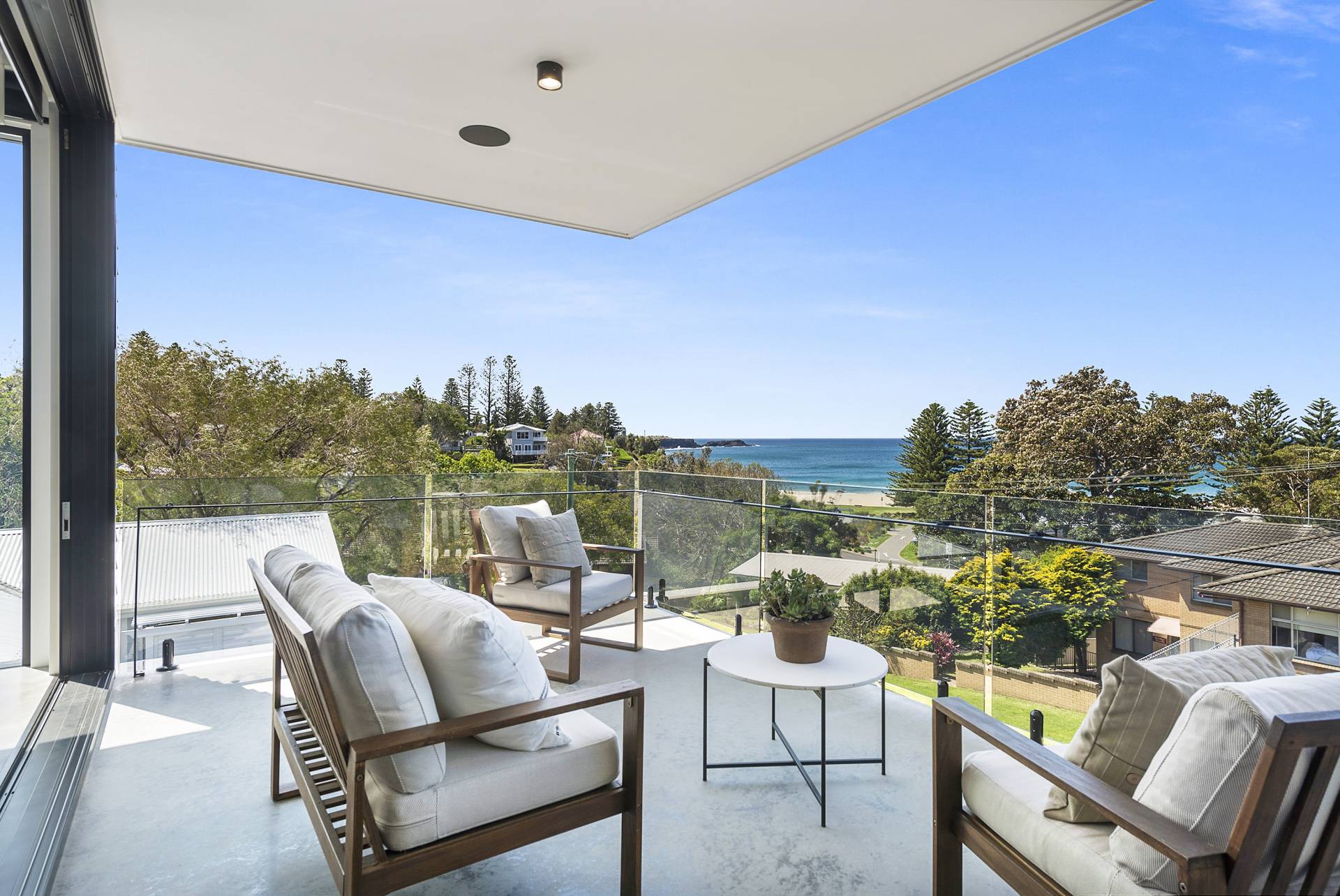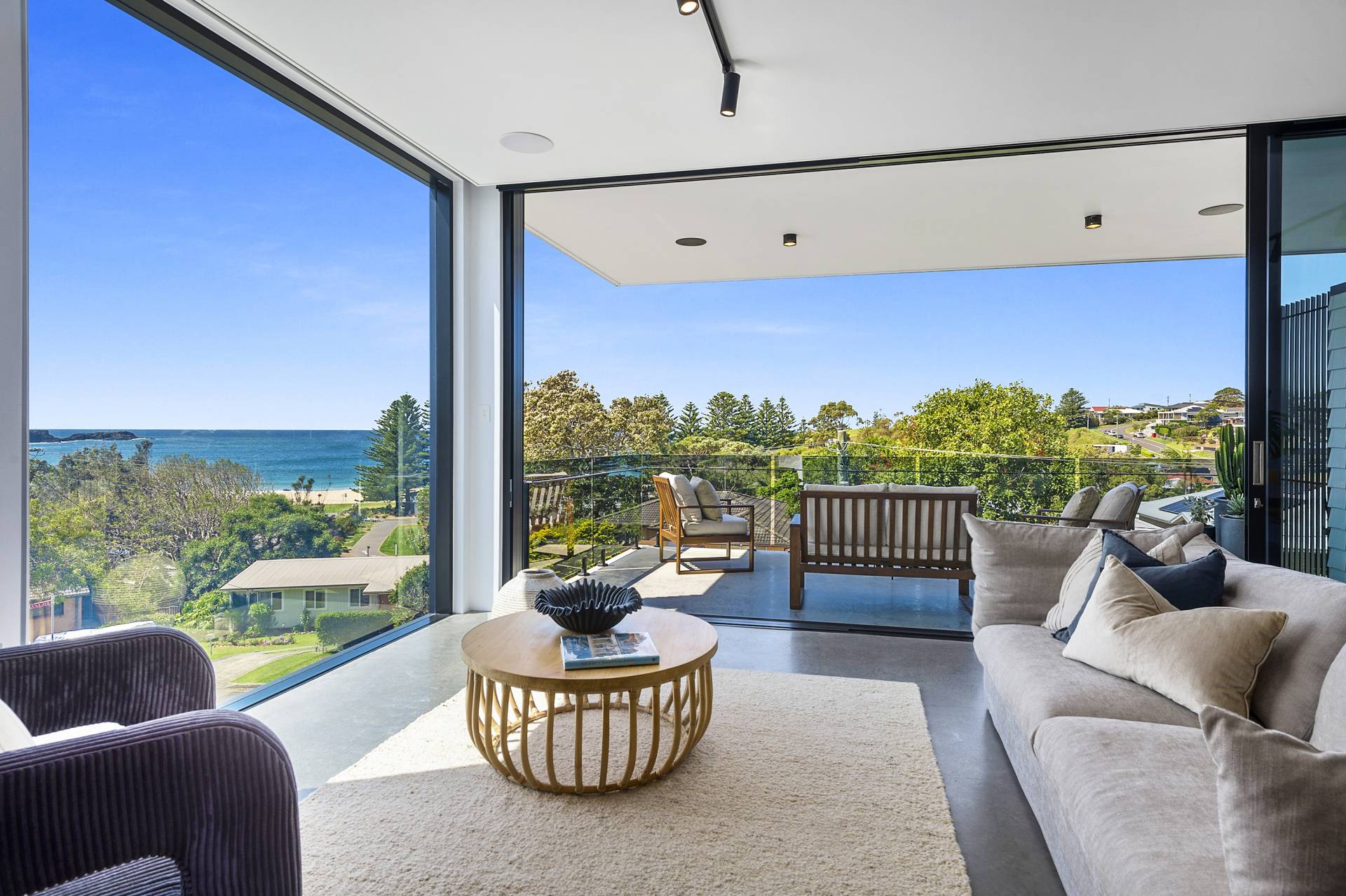 Ceilings throughout the residence are above average at 2550mm, soaring to a height of 2850mm as you enter the large open space living, dining and kitchen. Here, the impressive interiors are matched only by the views of ocean and the surf at Kendall’s Beach, with large expanses of glass opening onto a deep, covered terrace complete with outdoor BBQ and bar fridge for carefree year-round outdoor entertaining.