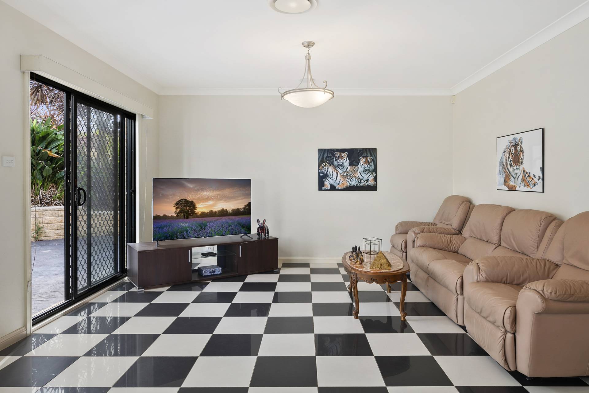This space opens onto a generously-sized and fully-tiled rear garden terraced into two levels, the upper a fully secured pool enclosure boasting an in-ground, solar heated pool as well as a large patio space just ideal for outdoor dining and entertaining in style. The garden is ready for your personal touch and would only benefit from the addition of a shady pergola or gazebo for the warm and sunny seasons, while to the side of the home is a space that would easily accommodate a trampoline or greenhouse.