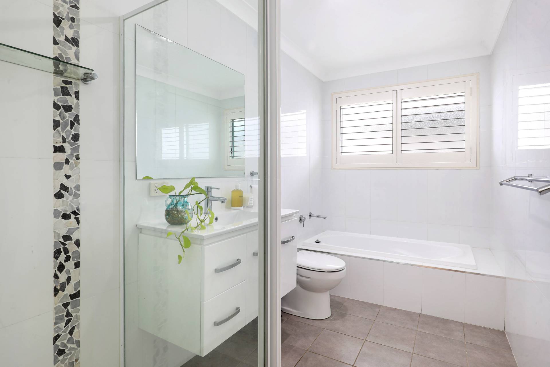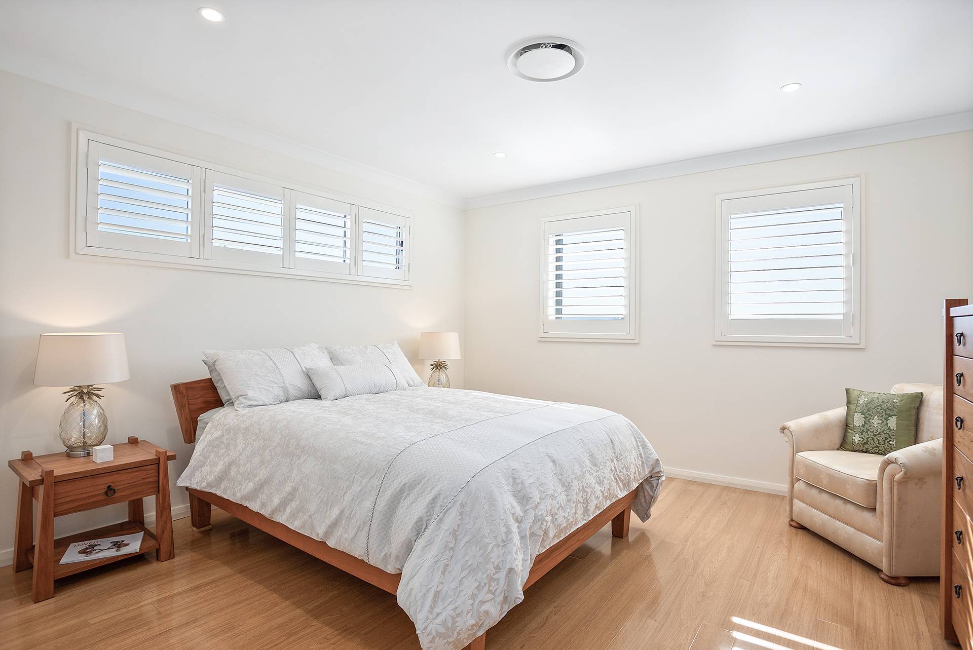 An open-plan layout connects the living, dining, and kitchen areas seamlessly, making it ideal for modern living and entertaining. Ducted air conditioning ensures year-round comfort, while energy-efficient solar panels add a sustainable touch to the home. The elegant white plantation shutters throughout the property add a timeless aesthetic, enhancing its charm and appeal.