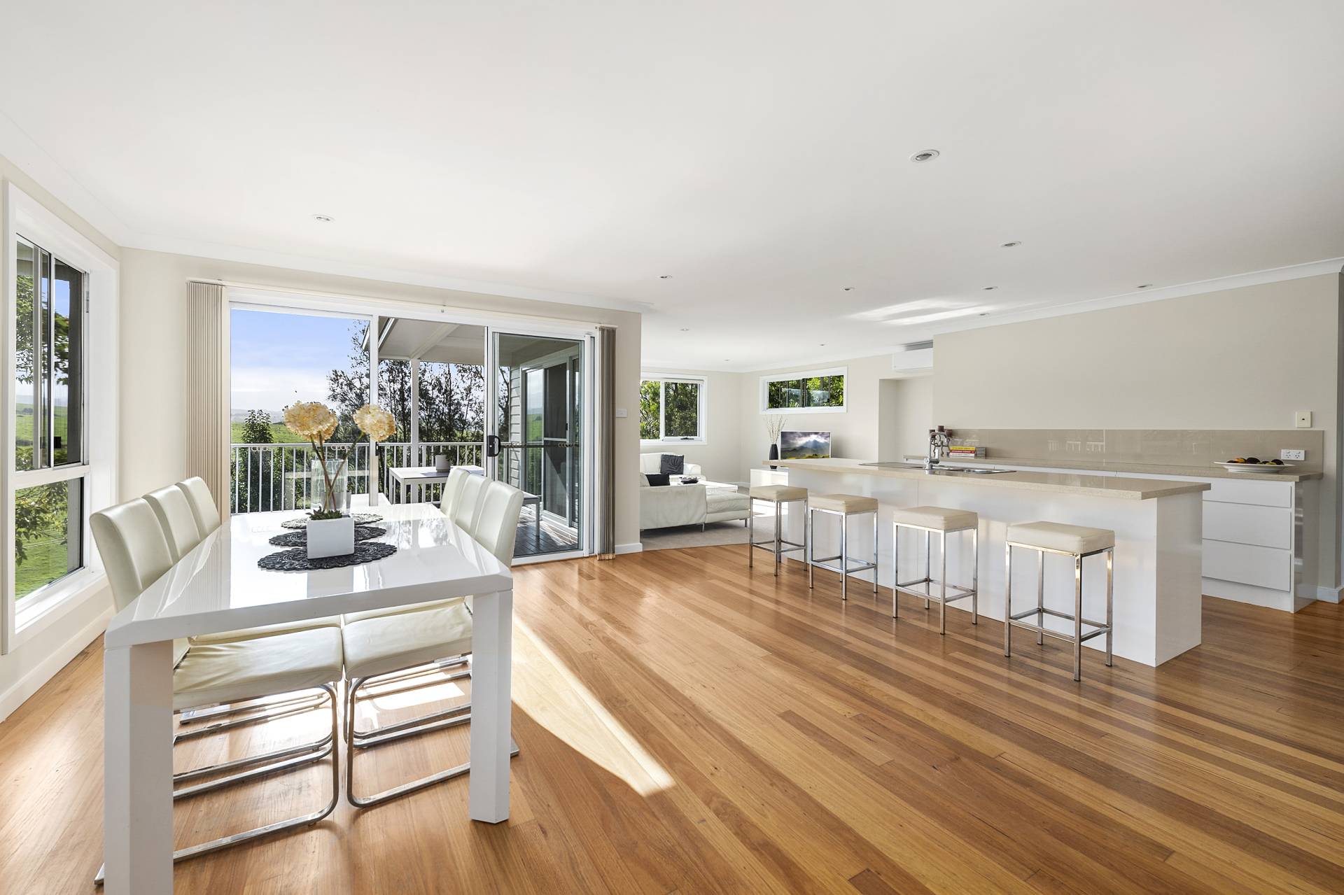 Situated in a high point overlooking the Jamberoo Valley and only moments from bustling Kiama, 7 Riversdale Road is a charming four-bedroom, two and a half-bathroom residence spread across two thoughtfully designed levels.