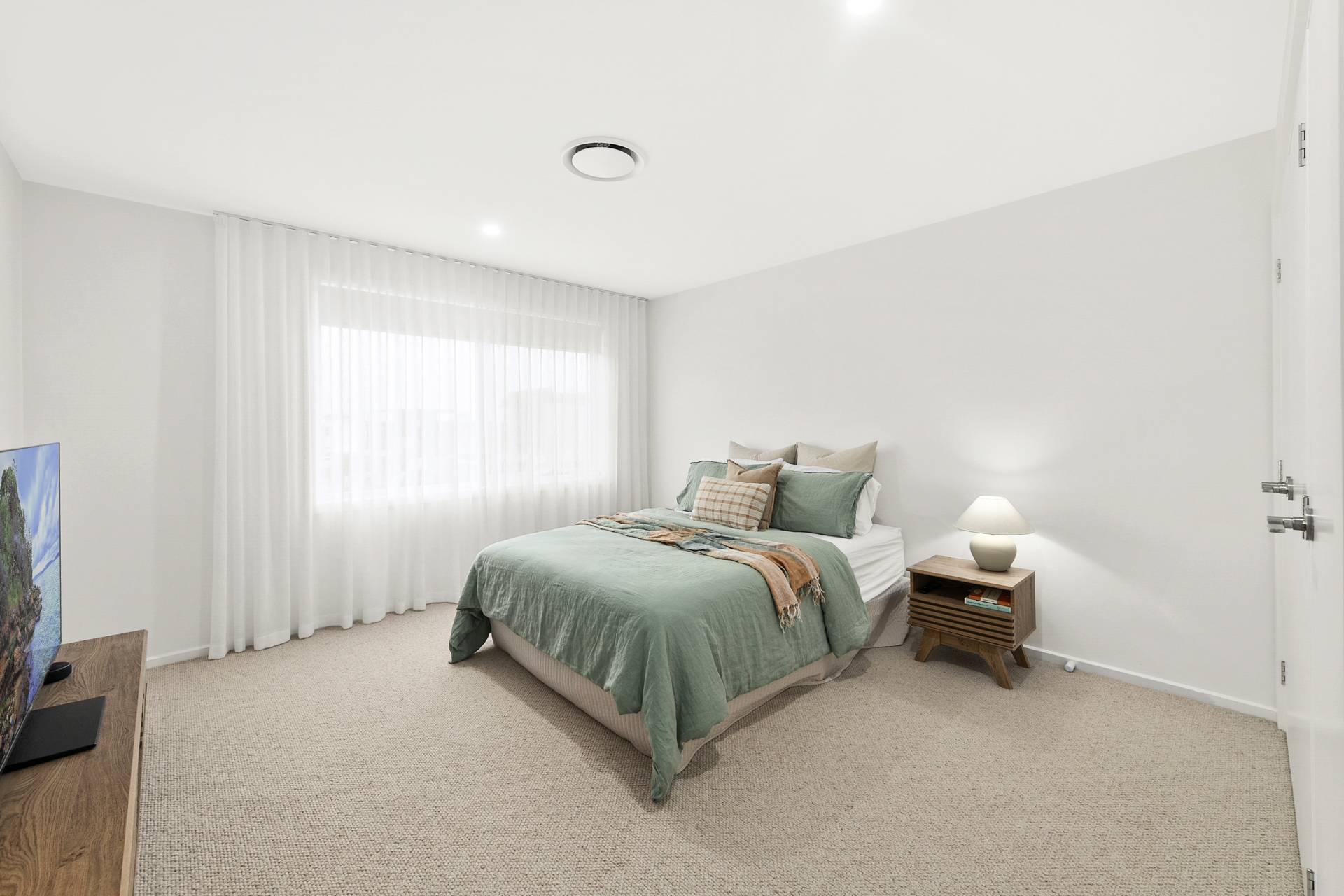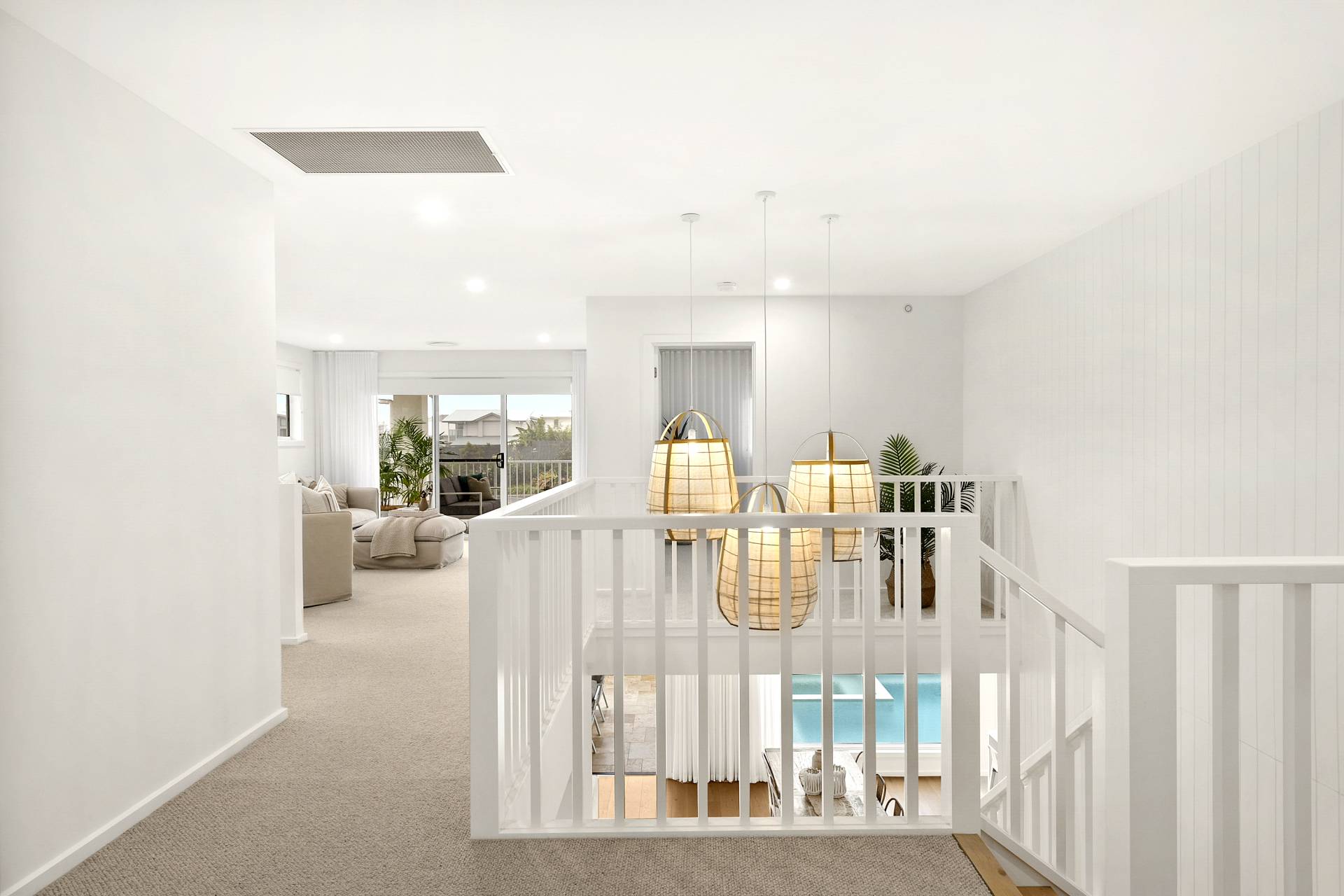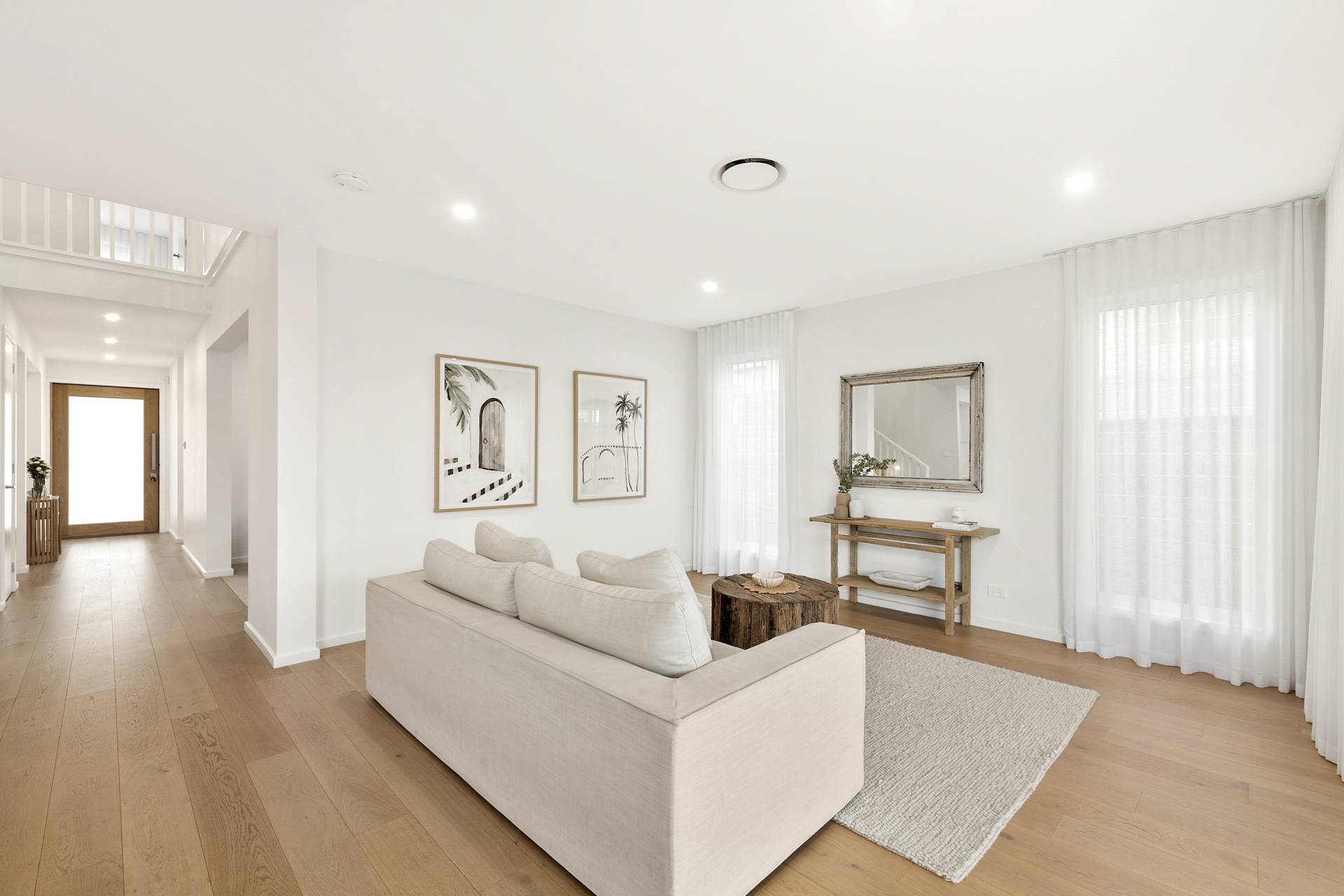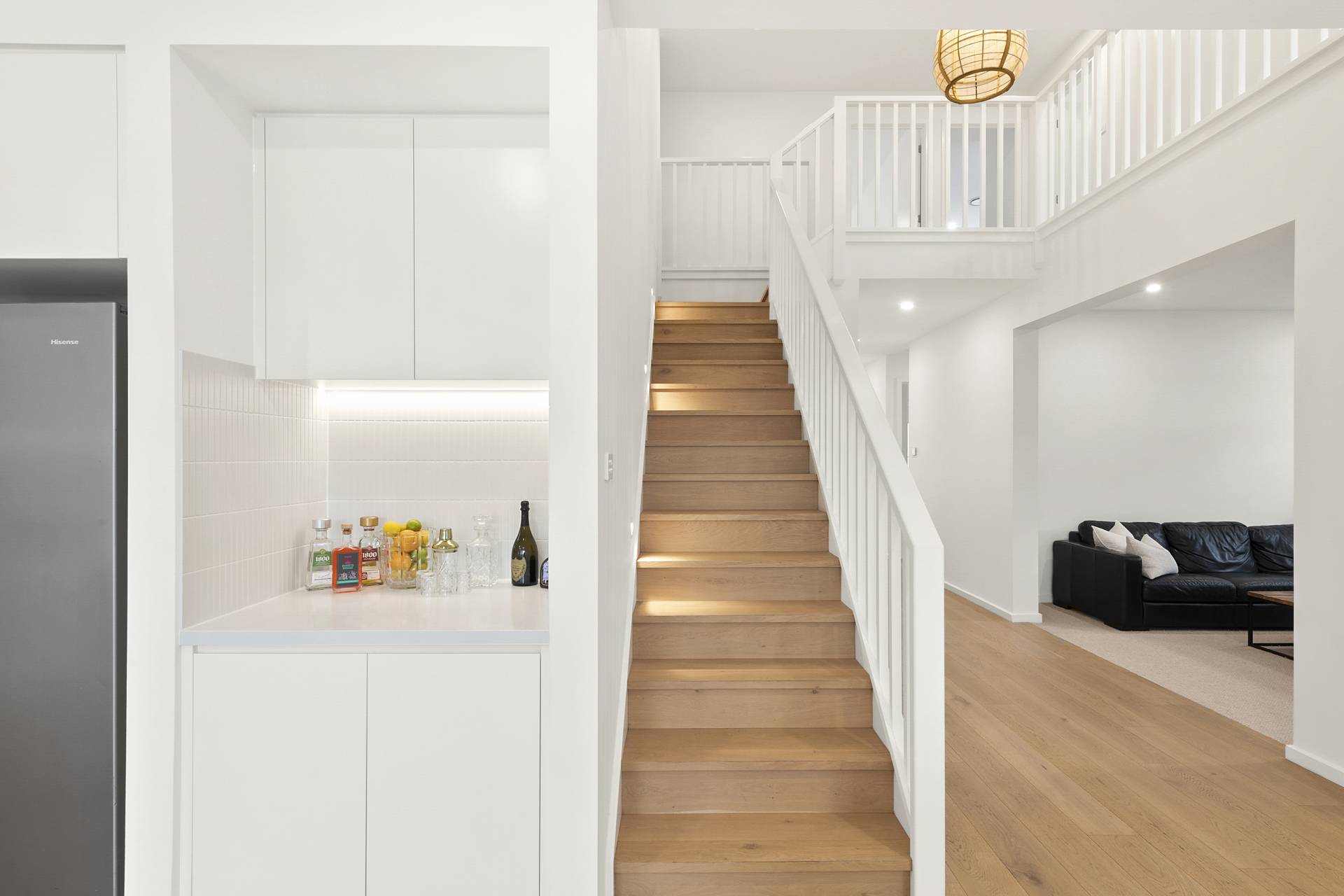 Step inside to discover a home bathed in natural light, with neutral tones and a sense of effortless calm throughout. The 2.7-metre-high ceilings provide an airy and open feel, while hardwood floors of engineered Oak feature throughout the main living spaces, creating a seamless flow. Pure wool carpets add warmth and luxury to the bedrooms, while wet areas including bathrooms and laundry room feature porcelain-tiled finishes that are both stylish and practical, perfectly suited to the demands of family life.