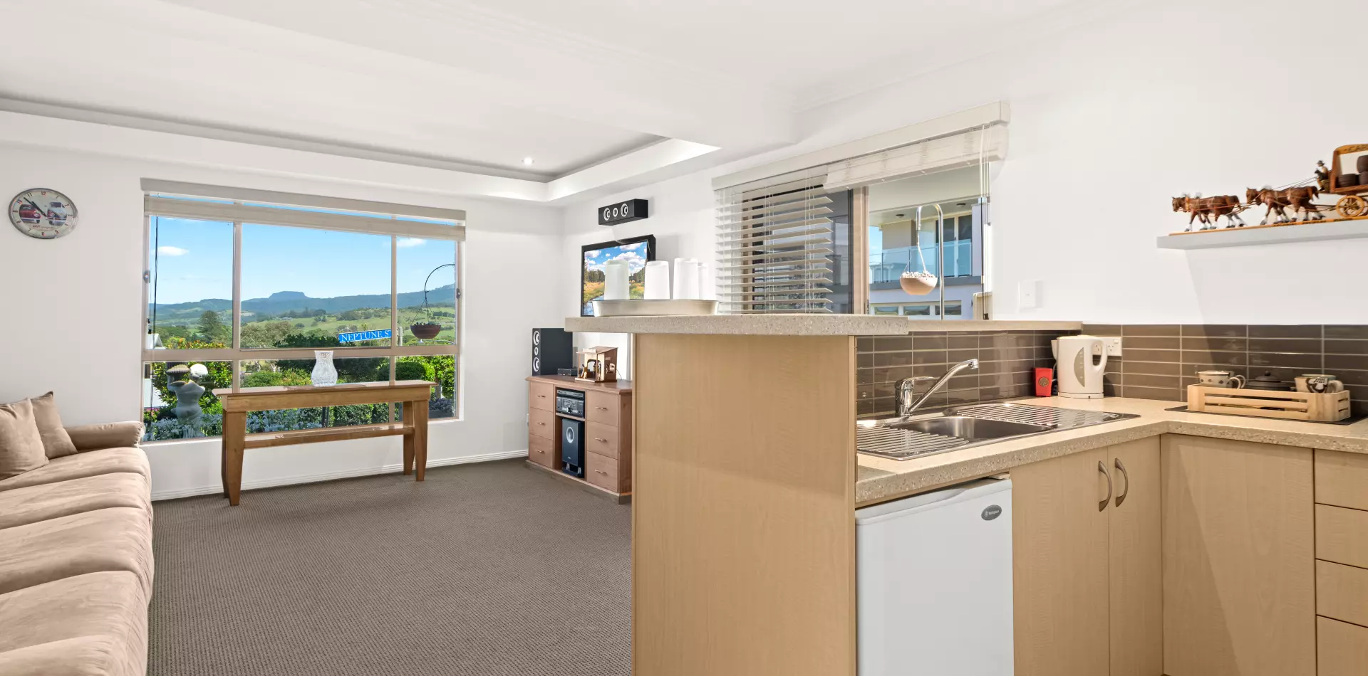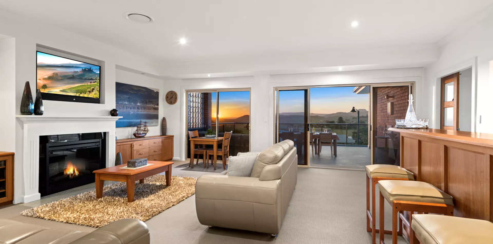 Inside, the central living room draws you in with Tasmanian Oak cabinetry, an electric fireplace and remote-controlled blinds — all flowing out to the impressive front balcony. From here, the panorama stretches from Coolangatta to Saddleback, framing every golden sunset. A truly Grand View.