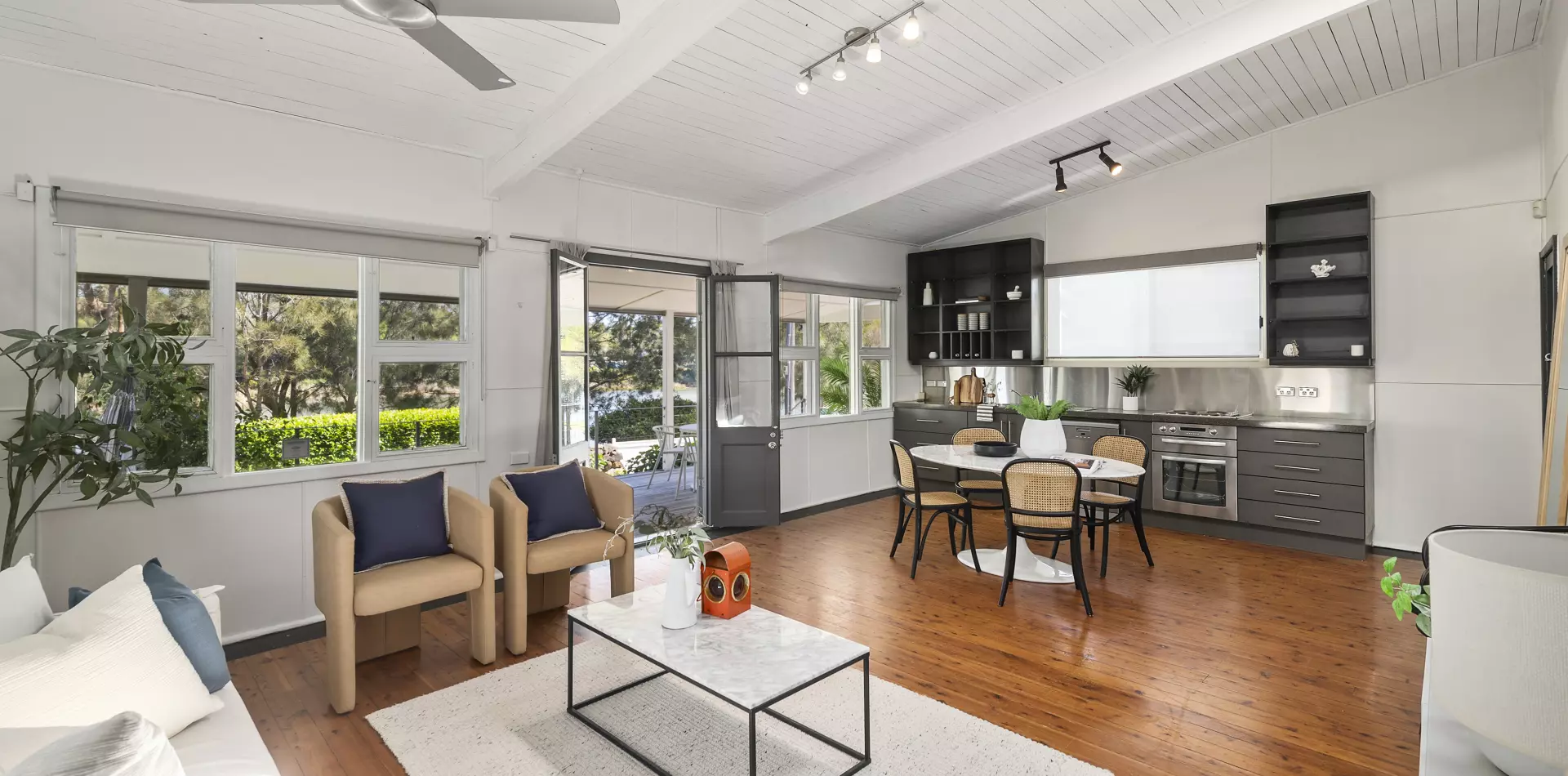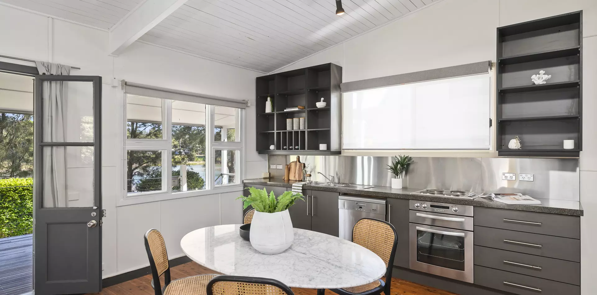 Originally built in the late 1920s, ‘Sweetie’ has aged with grace and more than a hint of glamour. Step inside and you’ll find a warm, light-filled interior where heritage detail meets modern convenience and comfort. Original timber doors and window frames whisper of the past, while a refreshed kitchen and bathroom bring contemporary comfort. The open-plan living and dining area leads to a generous covered deck - your front-row seat to the ever-changing drama of river, estuary and sky.
