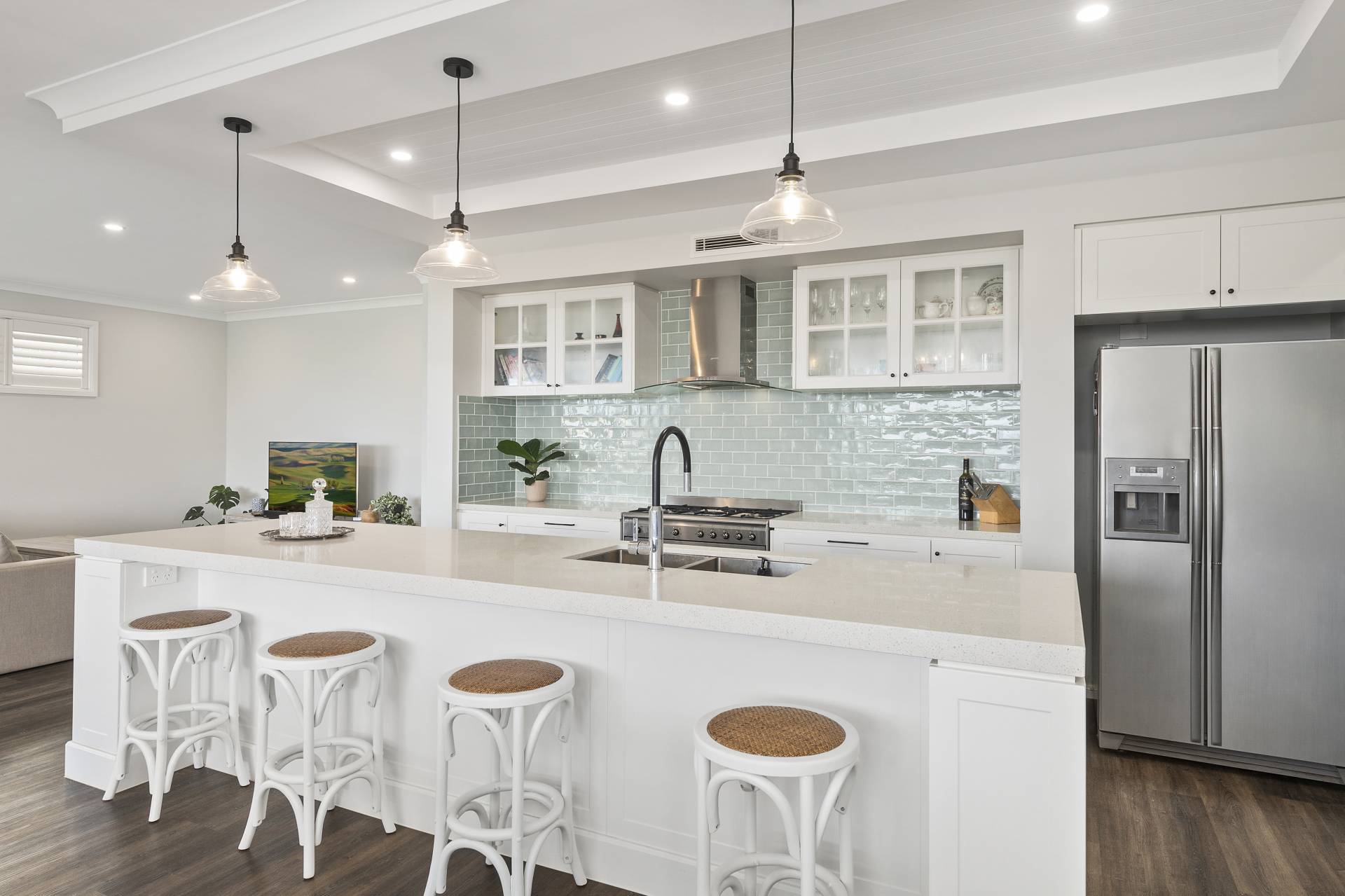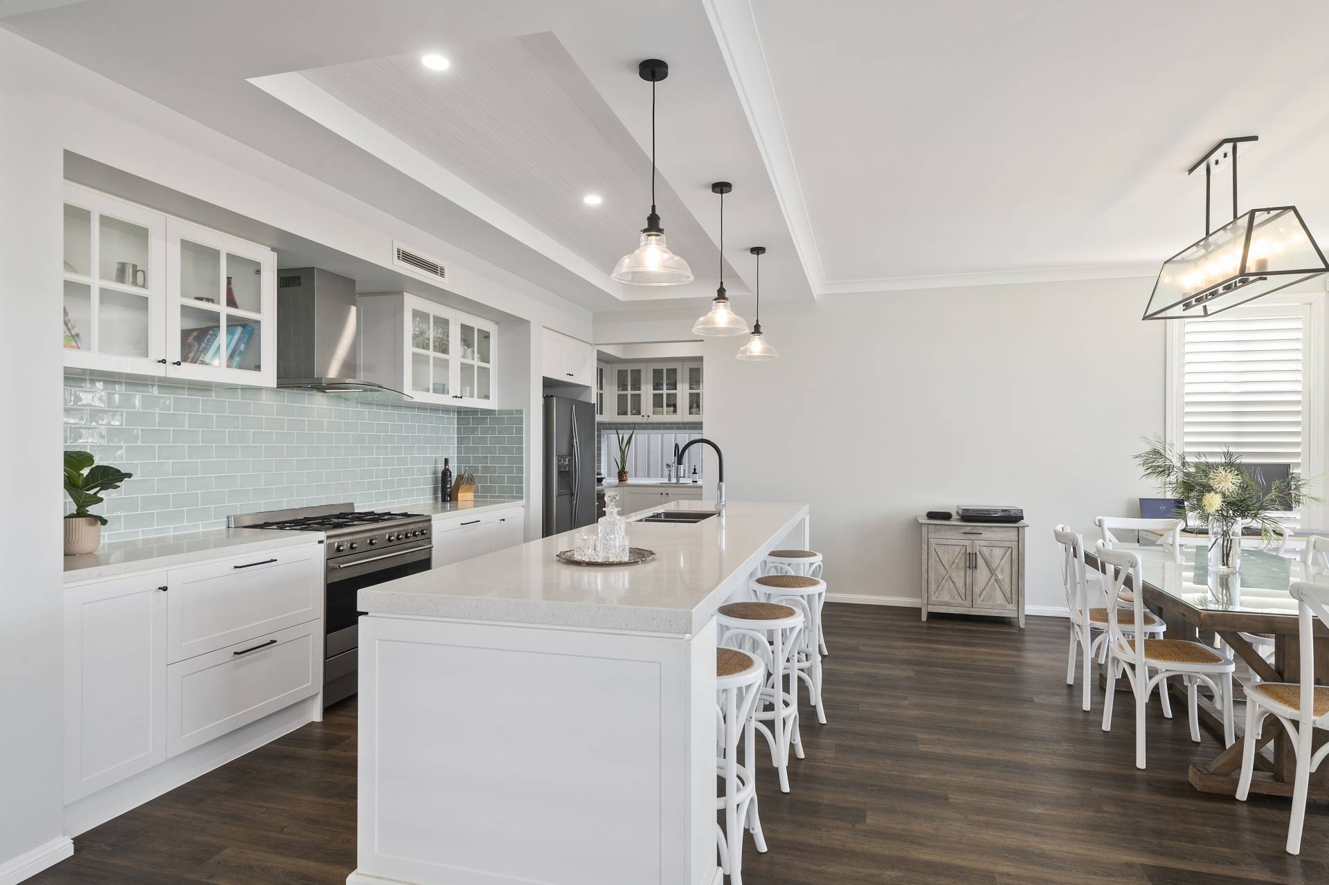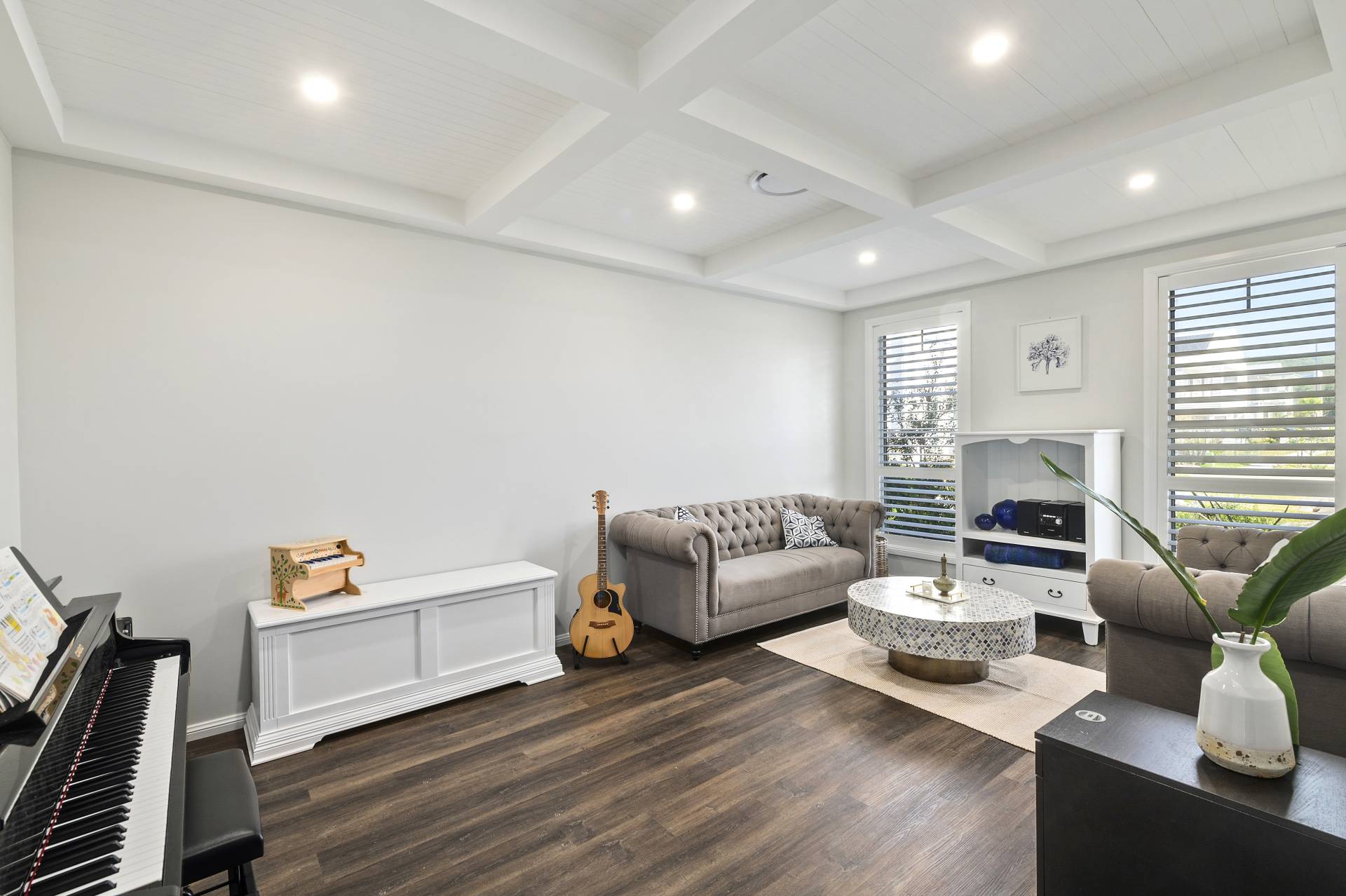Positioned in the heart of the prestigious Shell Cove community, 17 Seaboard Way stands as a masterclass in coastal luxury, where grand proportions meet sophisticated, modern design. An expansive five-bedroom residence meticulously crafted to offer a lifestyle of effortless elegance, catering specifically to those who value space and quality while offering a floorplan perfect for meeting the unique requirements of multi-generational living. From the moment you step through the entrance, the high calibre of this generously proportioned residence is evident, featuring engineered hardwood floors in a deep warm brown that provide a striking, grounded contrast against the pale neutral walls of white and light dove grey.