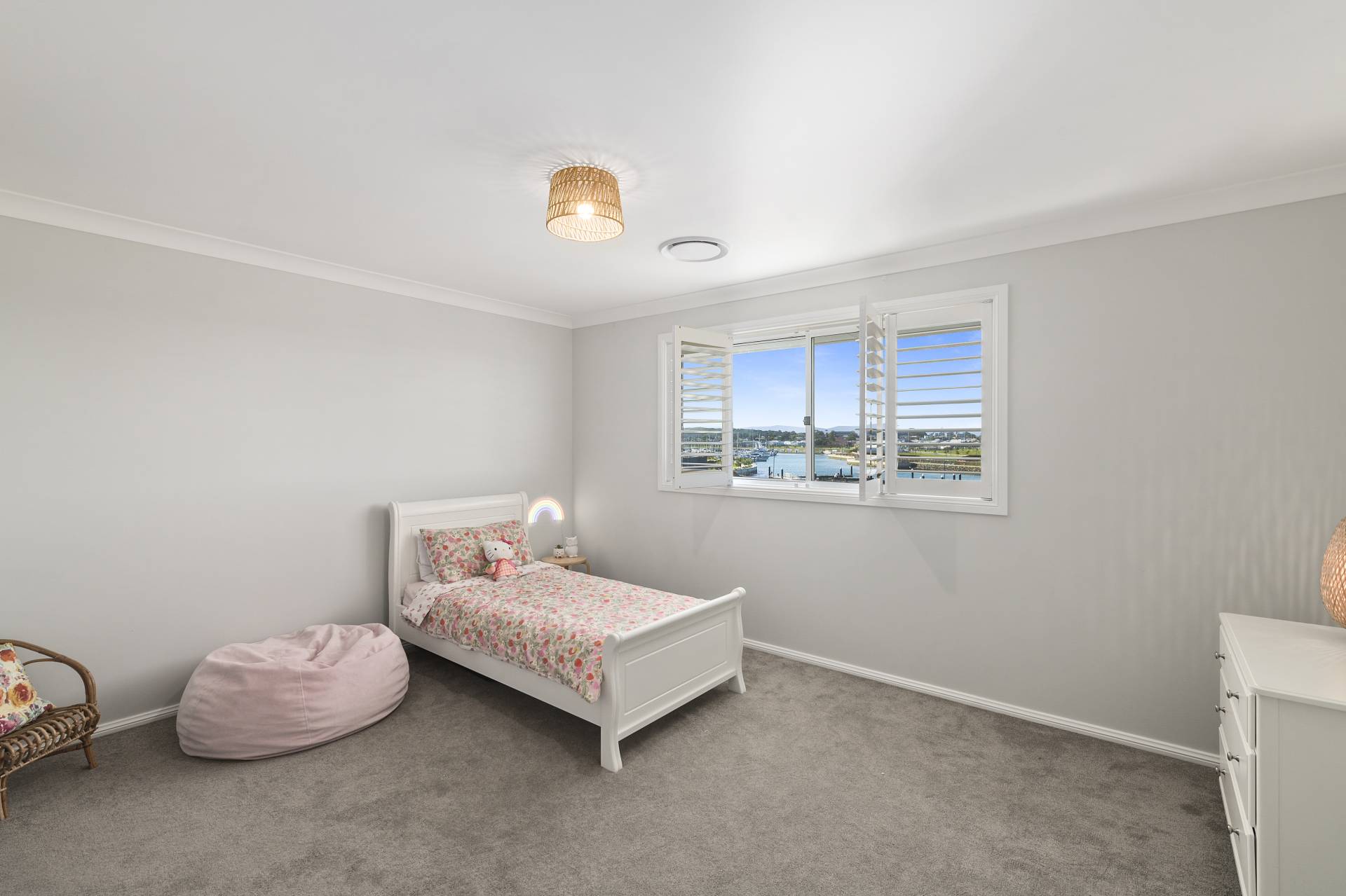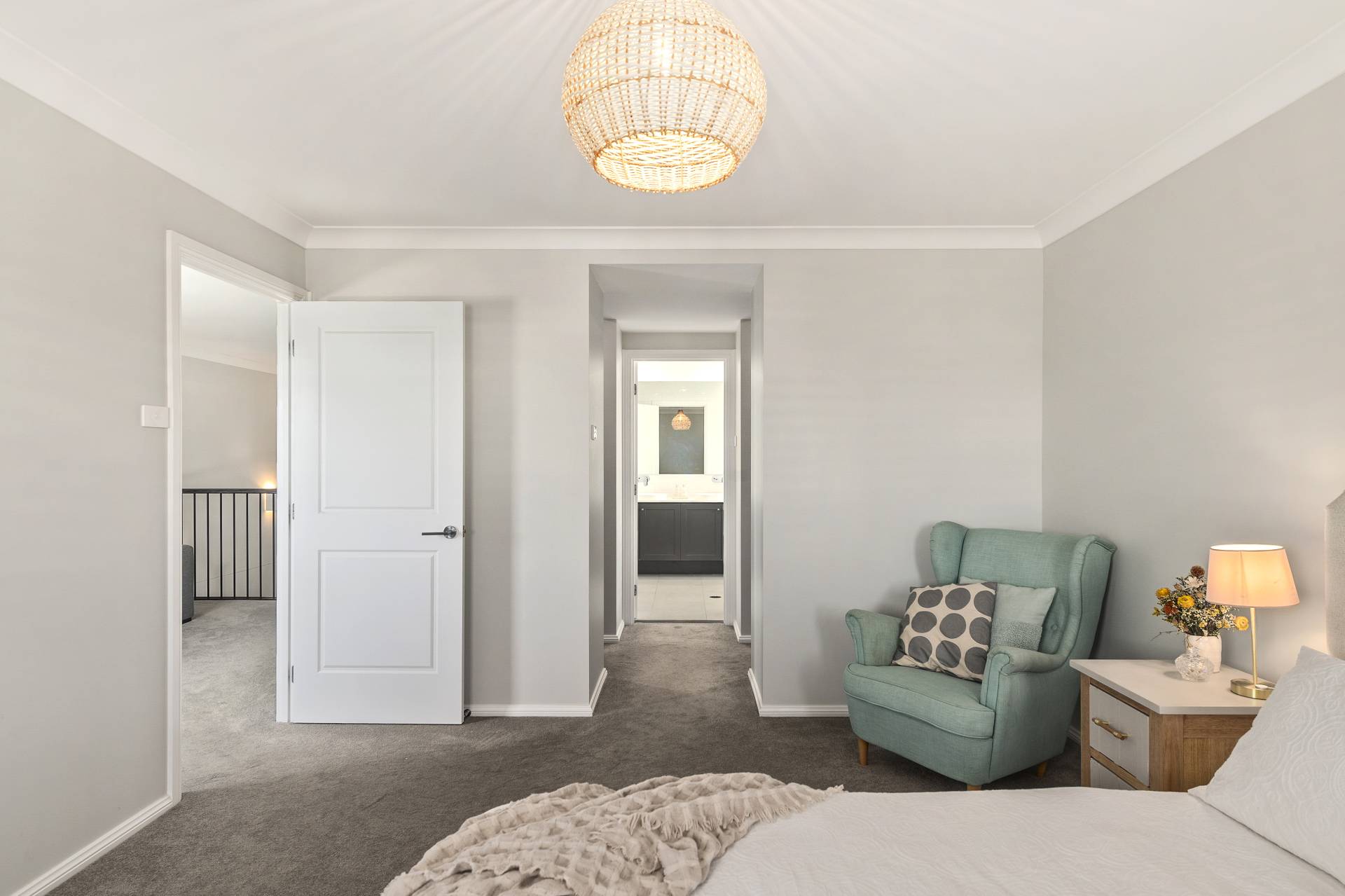 The sense of scale continues on the upper level, where a light-filled secondary family room with covered balcony and an adjoining library or study create a versatile floor plan for work or relaxation. The principal bedroom suite is a tranquil, thoughtfully crafted suite boasting walk-through "his and hers" robes that leads to a spacious, spa-like ensuite. Three further double bedrooms, all featuring plush wool carpet and built-in wardrobe storage, are serviced by a large family bathroom and generous linen storage. Every inch of the interior is finished to an exacting standard, including the timeless appeal of plantation shutters and the year-round comfort of reverse-cycle ducted and zoned climate control.